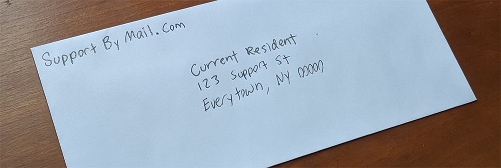 Mail your own letter. Copy and paste the above message or even better write your own. Find a address of someone you know or someone random and mail a message of support and encouragement. We could all use more of that. Address from: SUPPORTBYMAIL.COM. Hopefully this will encourage more letters to be mailed. It can be hard to find opportunities for acts of kindness, but you have the opportunity here. A small act of kindness have a positive impact for the doer and receiver.